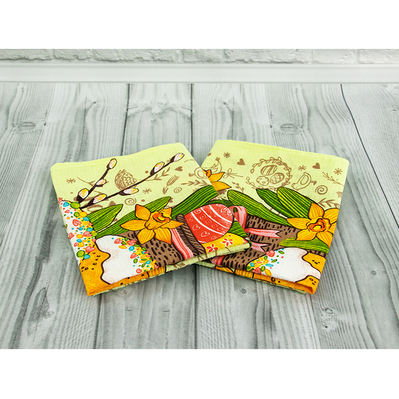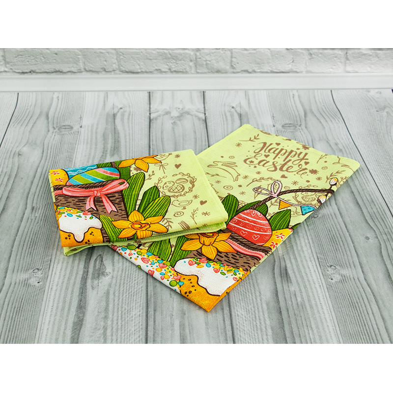 Вафельний набивний рушник "Великдень" салатовий 45х60 см